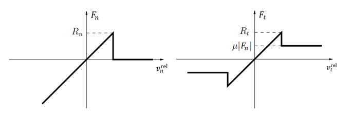 normal component of the contact force exceeds the defined normal strength.