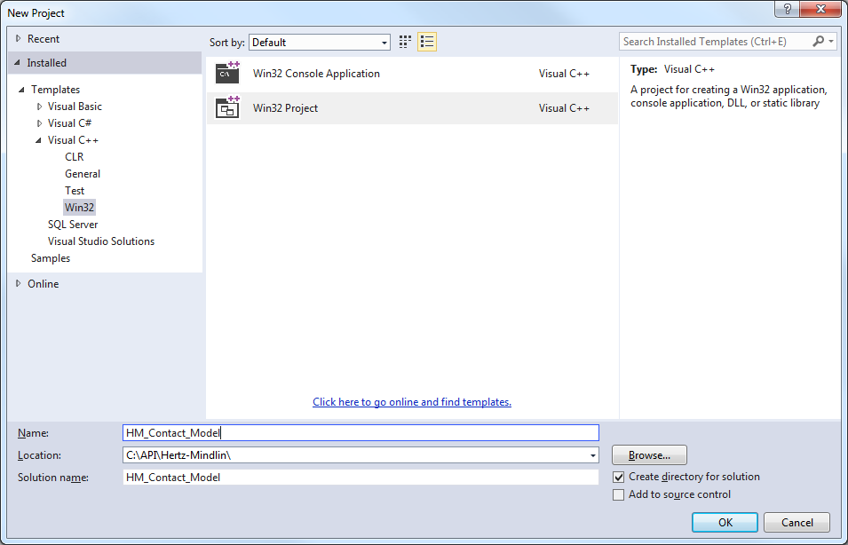 - Select Win32 Console Application.