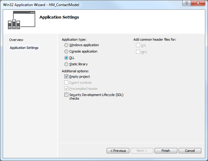 - On the next window, go to Application Settings and select DLL in the Application Type dropdown list.