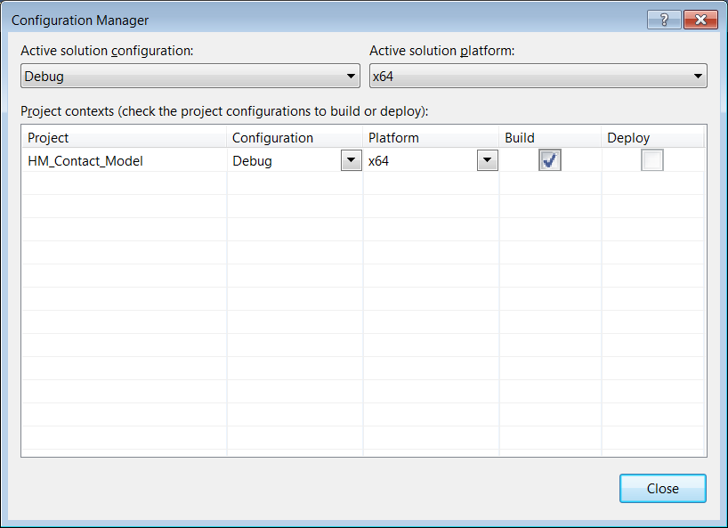 The Configuration Manager dialog box is displayed. - Select Release or Debug