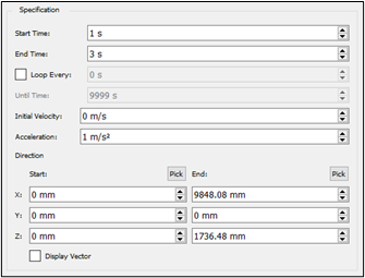Start and End point values. The Display Vector checkbox, if