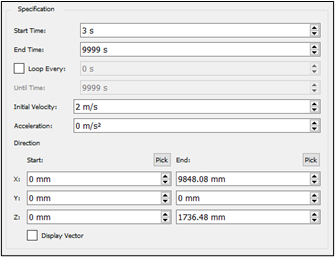 Right-click and then select Add Motion > Add Conveyor Translation (New Motion 1) and set up the Specification properties as