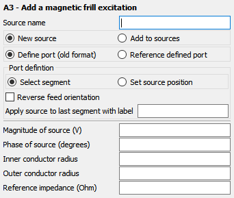 This card realises excitation by a magnetic ring current (TEM-frill) on a segment. It gives an an accurate model of a coaxial feed, but requires both the inner and outer radii.
