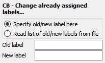 - This selection allows to read a list of old/new label pairs from an external data file. See further details below.