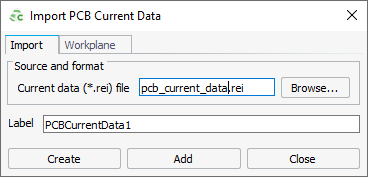 Import printed circuit board (PCB) current data from a PollEx radiated emission interface (.rei) file to create a PCB current data definition. Use the current data definition when defining an equivalent source.