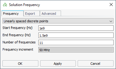 Settings group, click the Frequency icon.Figure 1. The Solution frequency dialog (Frequency