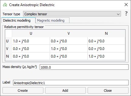 - Click Create to create the anisotropic medium and to close the dialog.