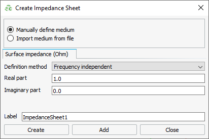 - In the Imaginary field, enter a value for the imaginary part of the impedance sheet.