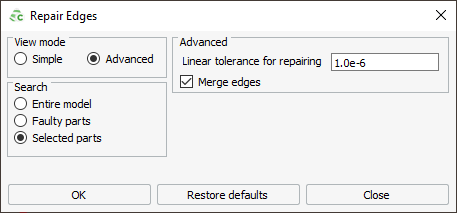 Figure 2. The Repair Edges dialog, Advanced tab.