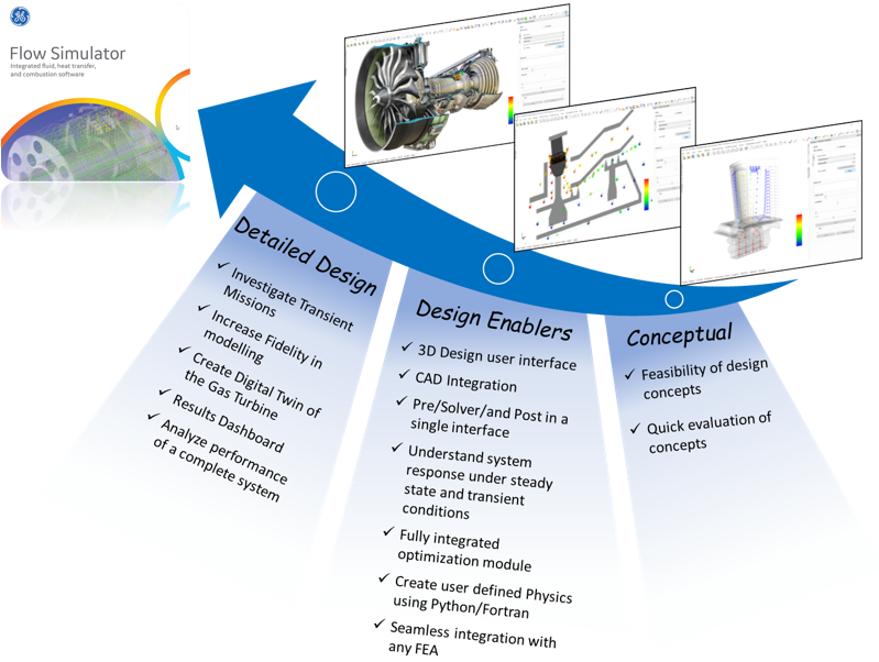 Flow Simulator is an integrated flow, heat transfer, and combustion design software that enables multidisciplinary engineering simulations to optimize machine design.