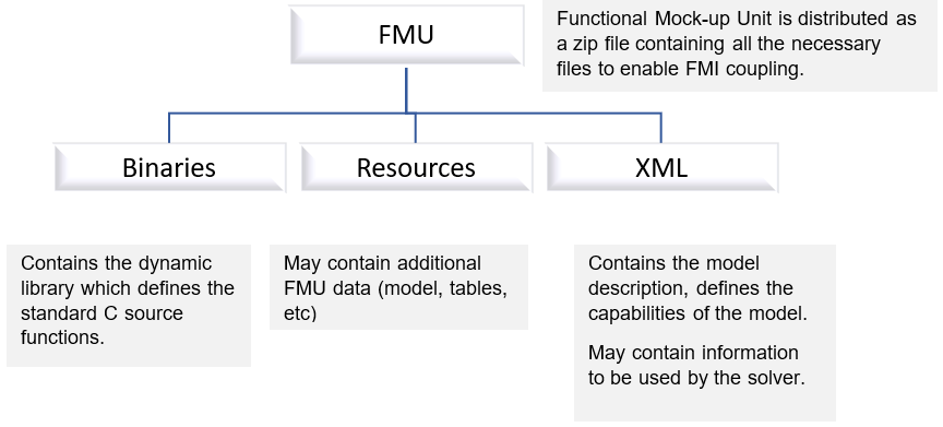 The Functional Mock-up Interface (FMI) is an open standard for the interface that facilitates model coupling between many simulation tools. It defines a ZIP archive and an application programming interface (API) to exchange dynamic models using a combination of XML files, binaries, and C code: the Functional Mock-up Unit (FMU).