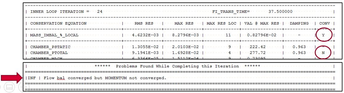 - Perhaps the chamber pressure change convergence tolerance is too low.