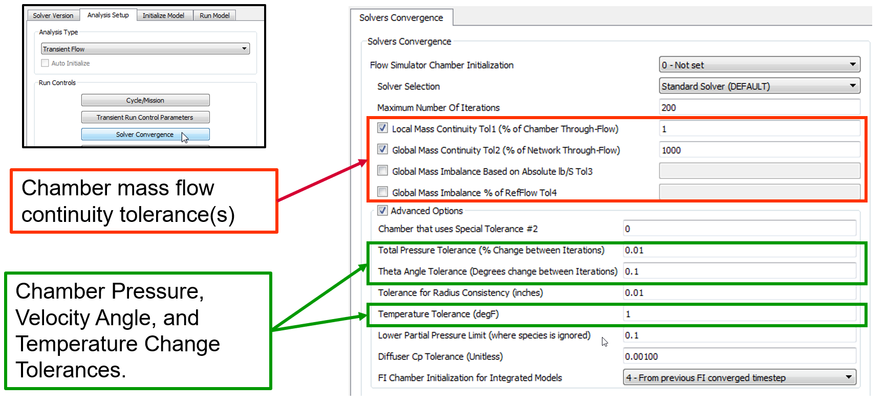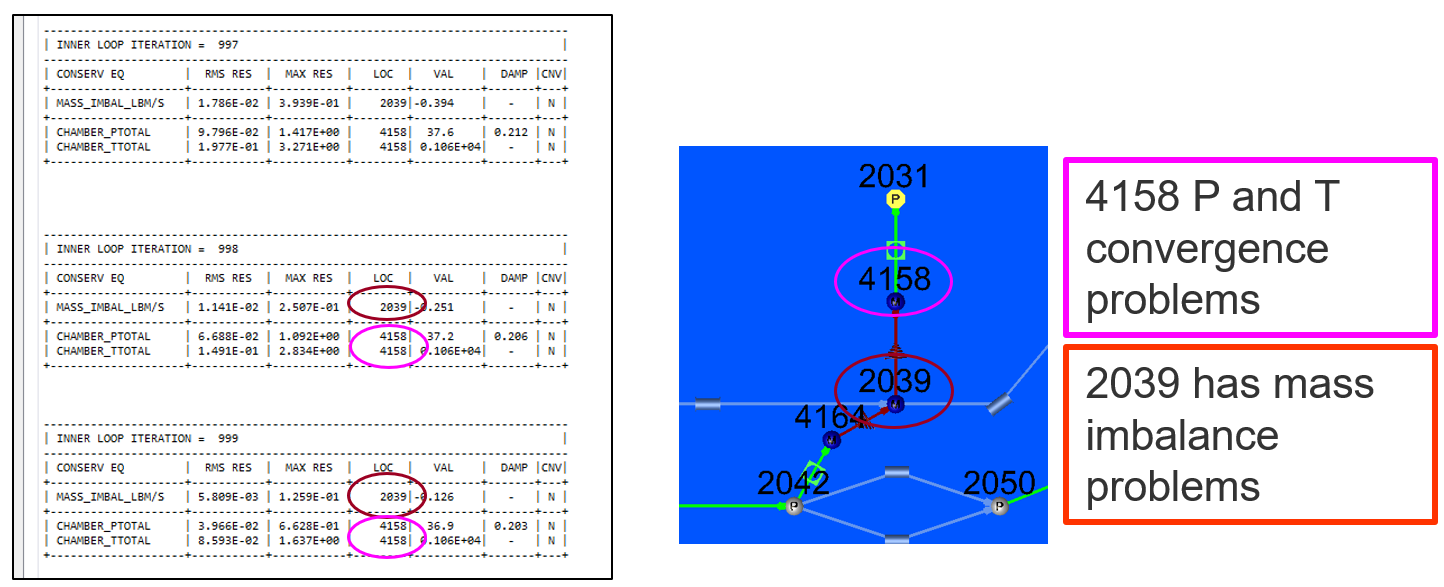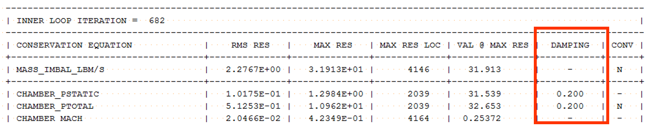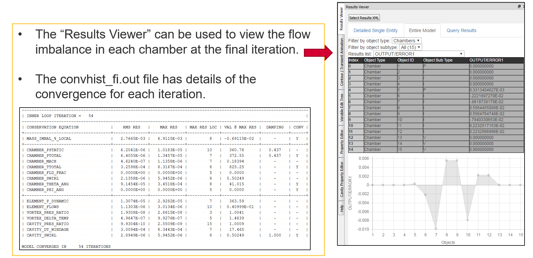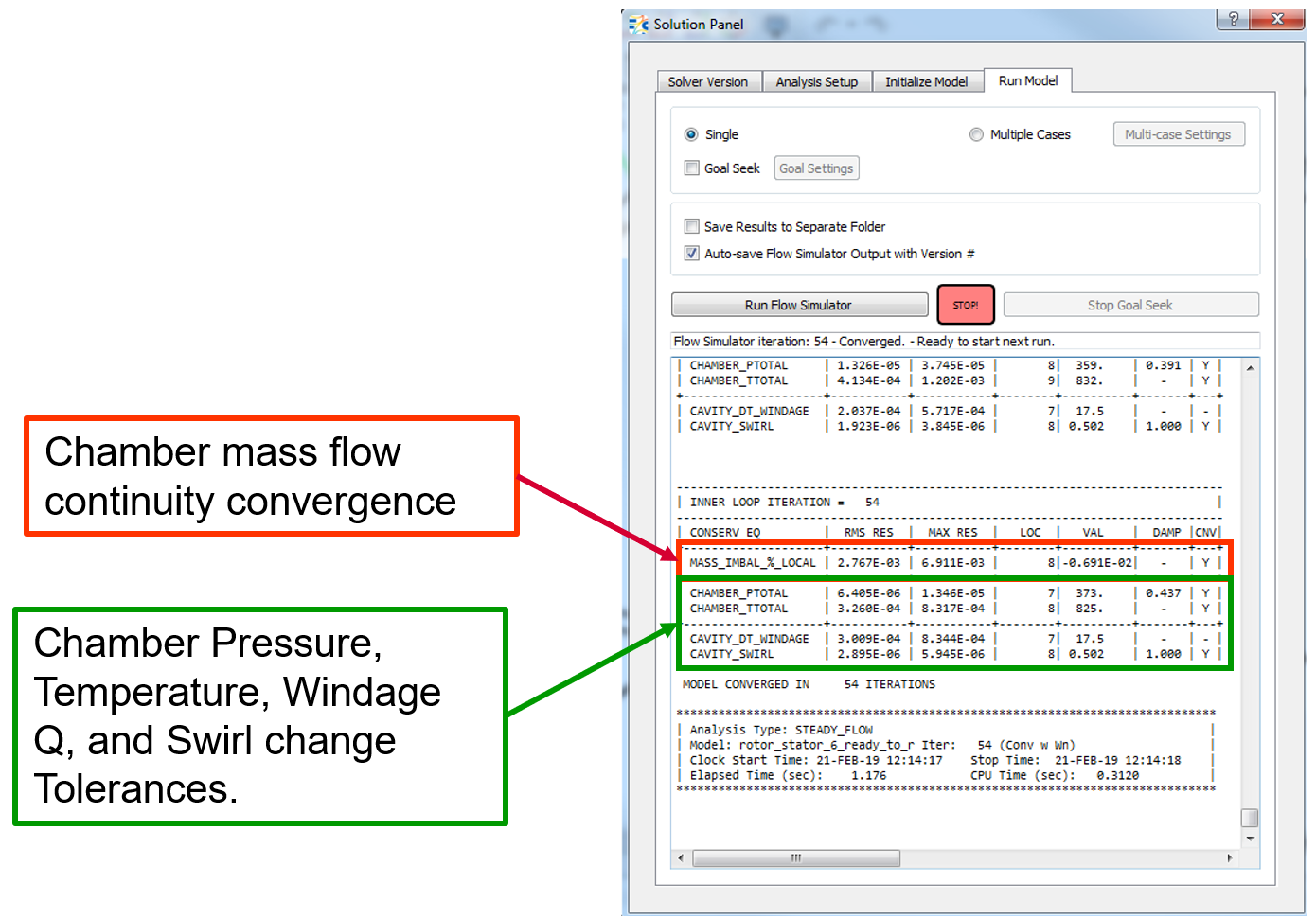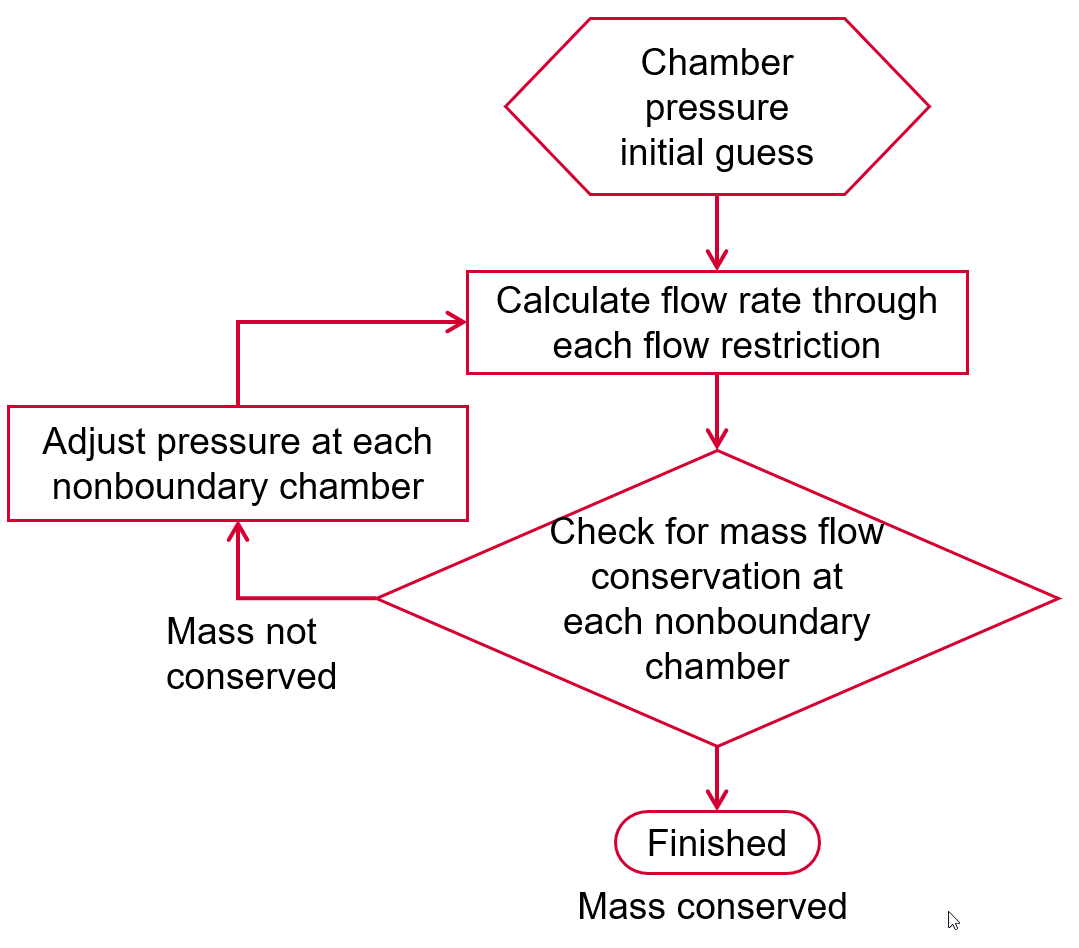 - Mass flow continuity at each chamber (Mass flow continuity in each chamber is the primary convergence criteria in the flow solver.)