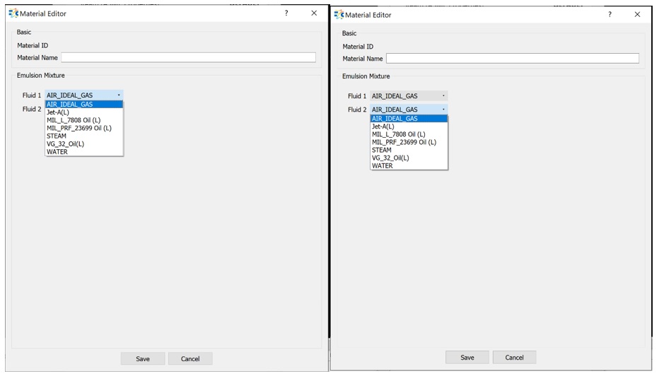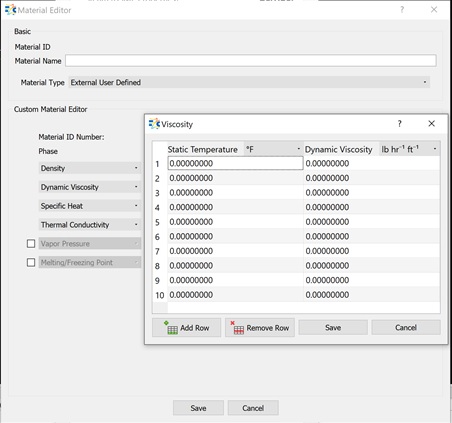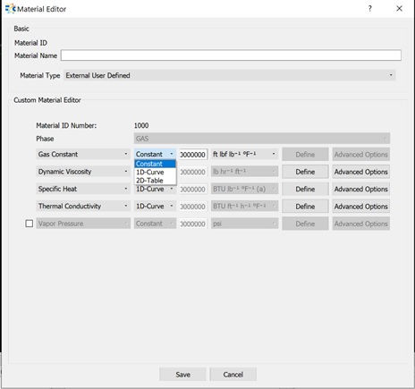 Use the External User Defined option to define your own material, with all required fluid properties provided. The Material ID starts with 1000 for External User Defined materials, and both the ID and the given name are printed in the .flo file. Thus, you can distinguish the user-defined materials in the file.