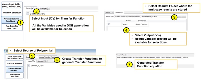 Flow Simulator Probabilistic allows user to create the transfer functions to quickly study the characteristics of the Flow & Thermal networks. You need to create the Output Variables(the Y’s) before creating the transfer functions. Refer Variable Editor Section to see how to create output variables.