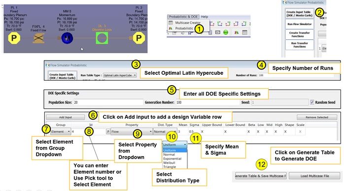 Interface to do Probabilistic analysis for the flow/thermal Network. The below mentioned step by step example provides insights about various options.