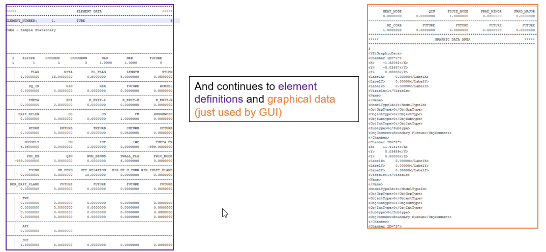 The model database contains information about the flow and/or thermal network to be simulated and is generated by the Flow Simulator GUI program. The Flow Simulator GUI also adds positional coordinate data to the model file. It is the essential data file enabling the Flow Simulator GUI to display the model in a user-friendly format. *.flo file is an ascii file so it can be edited in a text editor. Recommend that only simple edits be made (like changing an area of an orifice) in a text editor if required.