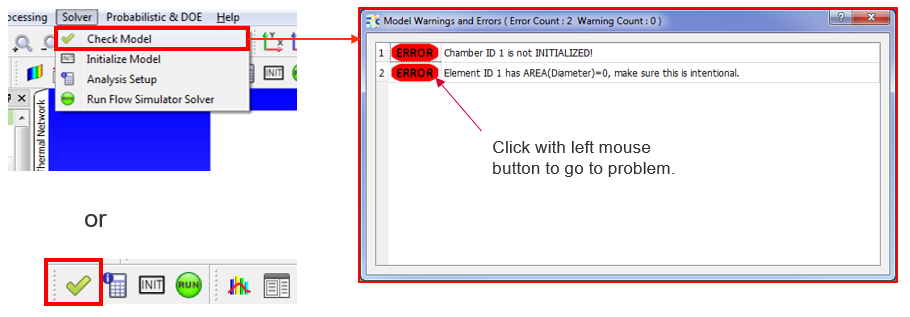 Before running the model, Flow Simulator allows the user to check for typical errors via a single button