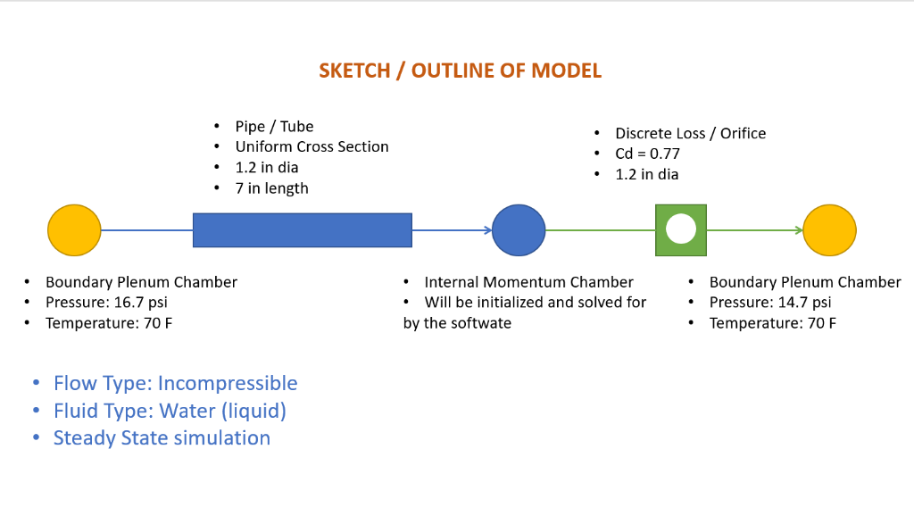 The first step of any successful endeavor is to create a solid plan. Modelling a flow and/or thermal network is no exception. While there are many tools which can help in planning, a classic and practical way would be to start with a simple drawing or sketch. Example sketch below.