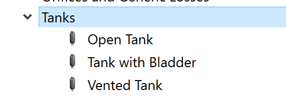 - Tank with a bladder: The expansion or contraction of the trapped gas in the enclosed tank determines the pressure. The polytropic process equation is used: P*V^n=constant. The user can input the polytropic index, n.