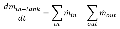 Note that the heat from thermal network or user input, can also be inferred from the user input for polytropic index, n. If n=1, the Q=W and the temperature is only a function of the heat capacity of the fluid in the tank and the energy of the fluid entering the tank. Other properties of the tank are solved as follows
