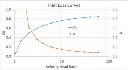 The type of inlet losses. K – Incompr Loss Coef Kin = inlet head loss / dynamic head, or 1) Cd – Compr Loss Coef