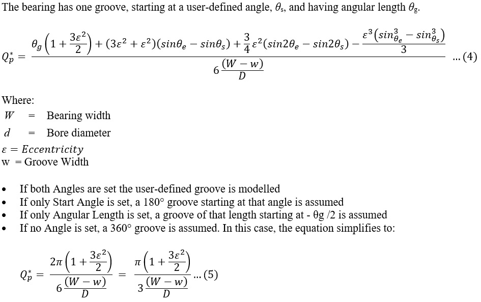 The component simulates a steadily loaded rotating or pivot bearing in a typical engine lubrication system. Its main use is as a discharge element, which simulates lubricant fed to the bearing by a circumferential groove within the bearing shell. The model permits a choice of angular length and position of the groove.