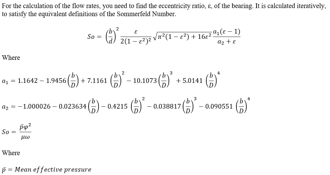 Average clearance between the shell of the bearing and the shaft Relative Clearance = (Total Clearance) / (Bearing Diameter) |