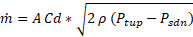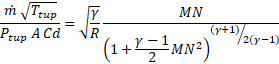 The compressible flowrate is calculated using the following “flow function” equation (ref 5):
