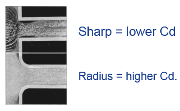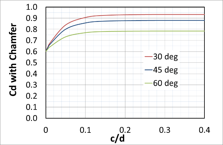 A fillet or chamfer can significantly reduce the losses in the hole (a higher Cd).