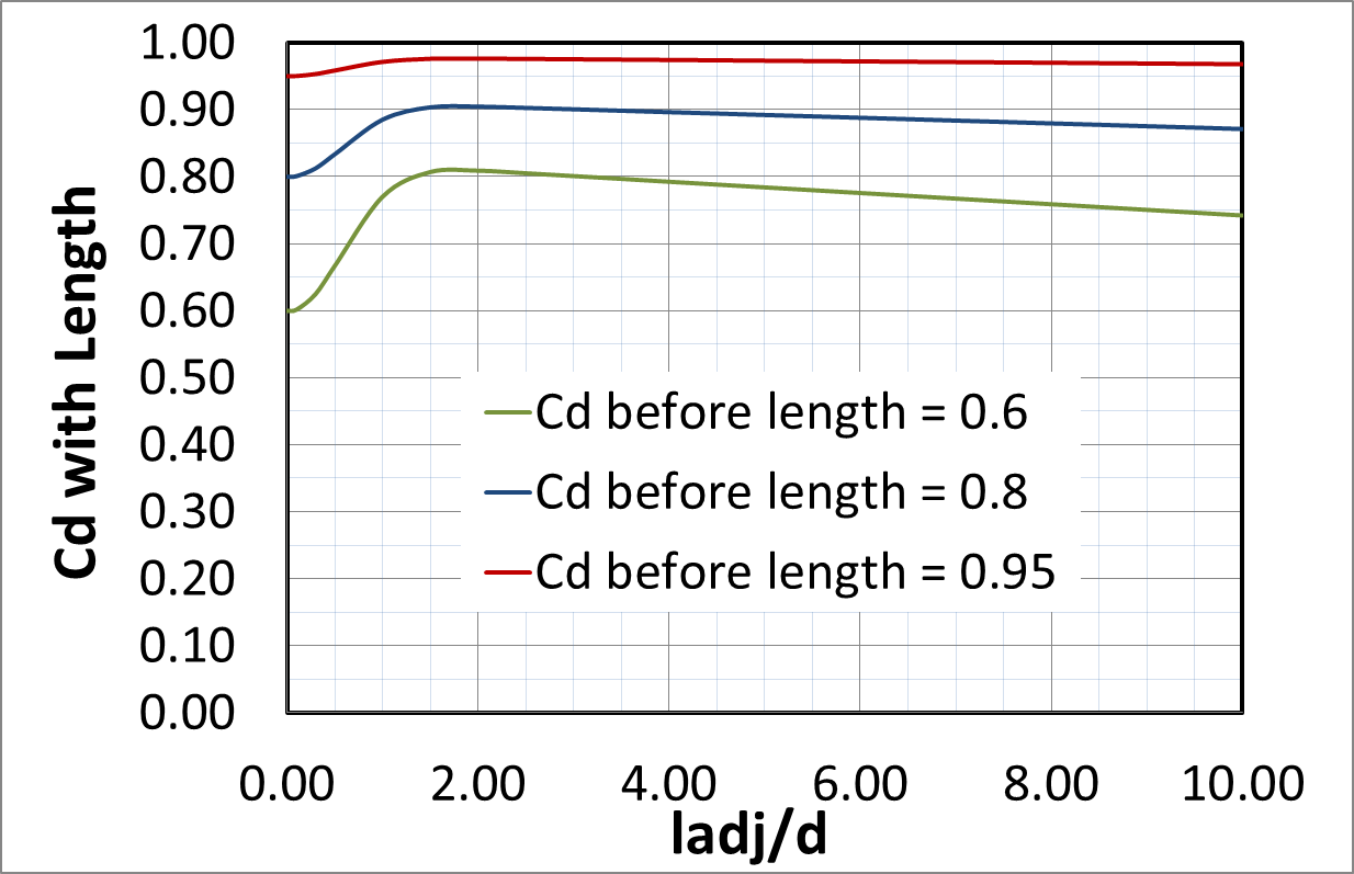 The plot demonstrates the length effect and may not represent the final Cd. Note that the maximum Cd occurs between L/D = 1.5 and 2. Friction losses increase as the orifice gets longer so Cd decreases for L/D > 2
