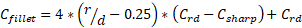 calculation. Default is based on CORNTYP -1: No Corner modification used if CORNTYP=1 0: McGreehan Fillet used if CORNTYP=2 1: Idris Chamfer used if CORNTYP=3 >1000: A custom equation |