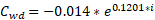 The plot demonstrates the incidence effect and may not represent the final Cd. The absolute value of the incidence angle is used in this equation. The maximum incidence angle allowed is 30o. The maximum c/d allowed is 0.20.