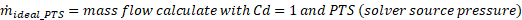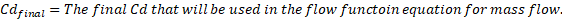 CD | Compressible discharge coefficient (CDRLU) adjusted for effects of source pressure difference between empirical equations and Flow Simulator PTS. Same as the “Final Discharge Coefficient” already listed in the element output. | (unitless) |