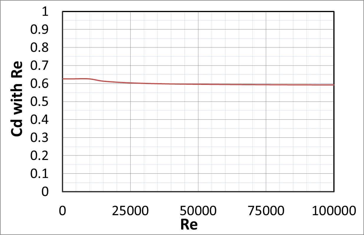 The Cd is not very sensitive to the Re. The minimum Re used in this equation is 10,000. The Cd used as the basis for the next step is always around 0.6 for an orifice.