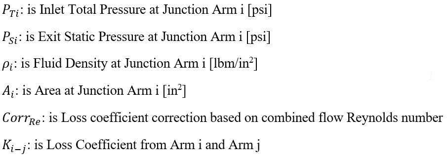 RHO | Density of the fluid at the Junction Arm 1, 2, & 3 | Lbm/ft3, kg/m3 |