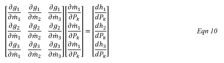 The linear system of equation using [Eqn 9] for residual equations j=1,2, and 3 will be