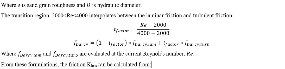 KFRIC | Loss coefficient attributable to friction | (unitless) |