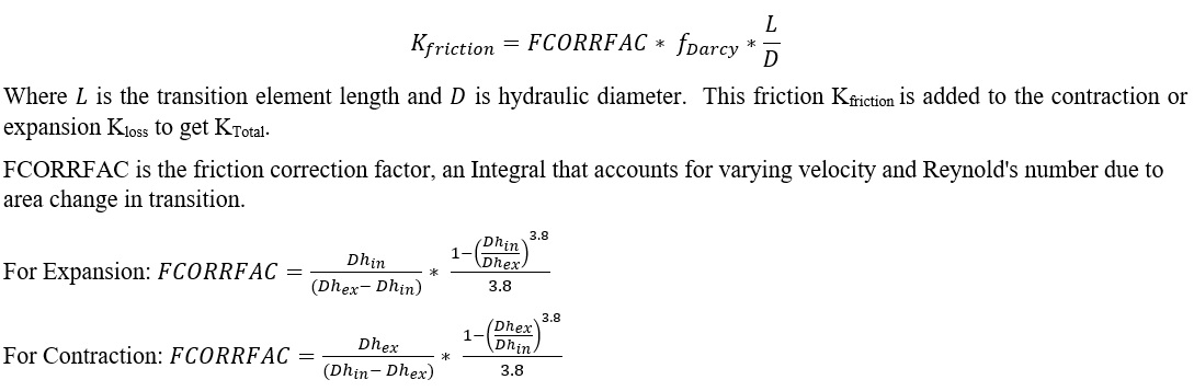 Contraction K is calculated differently based on the “Contraction Type” selected for the transition element. The K formulations for the different expansion types are outlined below.