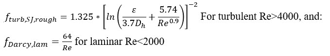 - Swamee-Jain approximation of the Colebrook-White equation (Moody diagram) for wall Darcy friction factor as a function of Reynolds number: