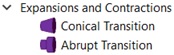 Both Conical & Abrupt Transitions can be found under both “Compressible Gas Elements” & “Incompressible Liquid Elements” - “Expansions & Contraction” section