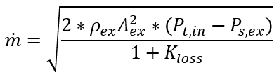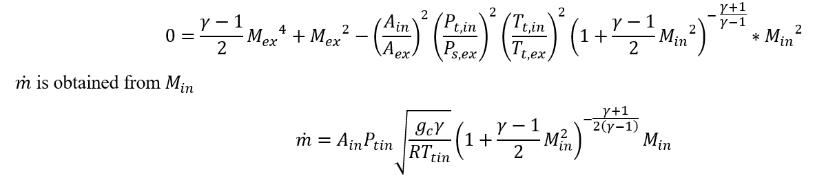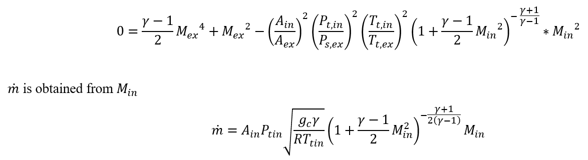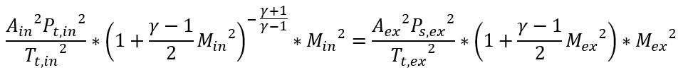 Exit Mach number is not a known quantity in Flow Simulator elements, but it can be calculated from known quantities using continuity: