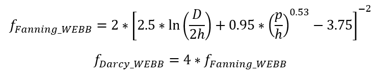 Rather than a fixed turbulator friction factor, the user may choose to use the Webb formulation for a Turbulated wall Fanning friction factor as a function of Reynolds number: