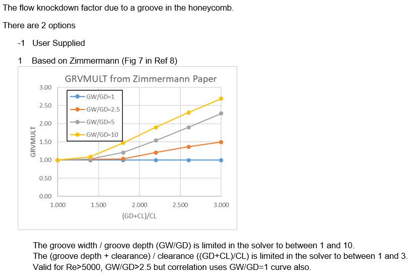 Groove Flow Knockdown Factor is a multiplier that is applied to a no-groove leakage flow to calculate the leakage flow with a groove. Can be greater or less than 1. If the tooth is outside the groove, GRV_MULT should be > 1 indicating more flow through the seal. | |||||||||||||||||||||||||||||||||||||||||||||||||||||||||||||||||||||||||||||||||||||||||||||||||||||||||||||||||||||||||||||||||||||||||||||||||||||||||