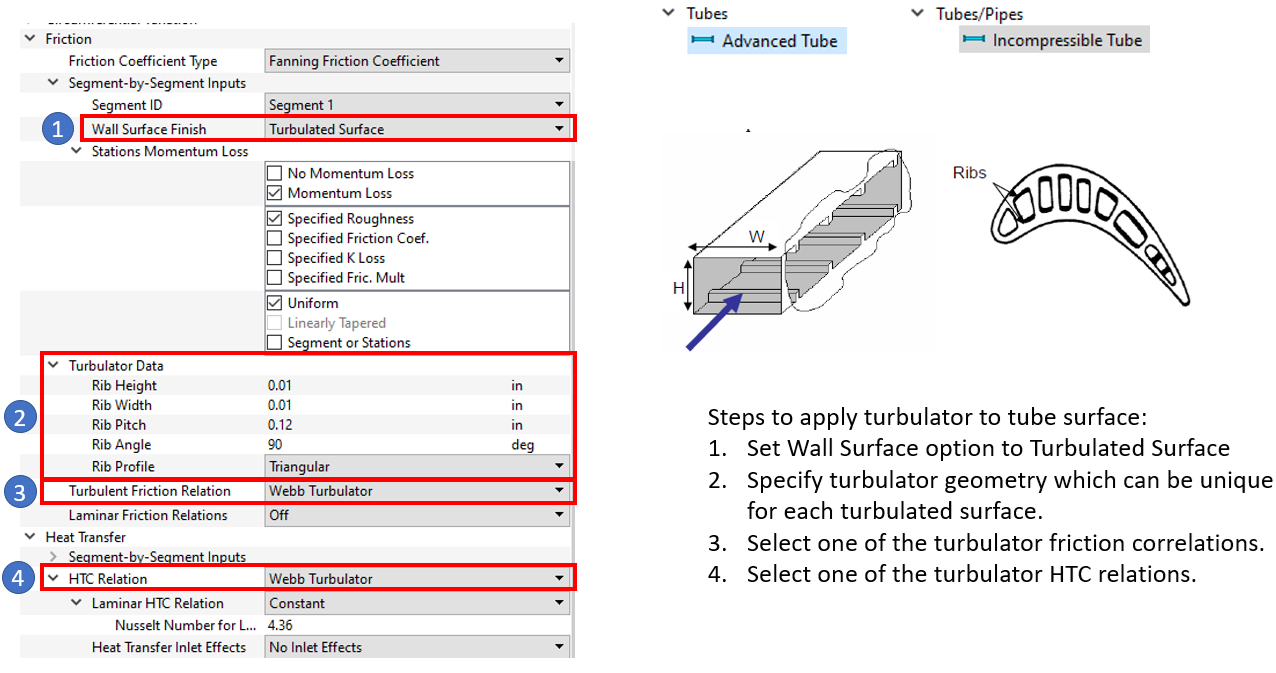 1 | Turbulator Correlation (TURB_CORL) | The HTC equation to use. 1: Webb Circ Tube 2: TS Ravi Circ Tube 3: Han 90 deg, 2-sided rect 4: Han Angled, 2-sided rect |
