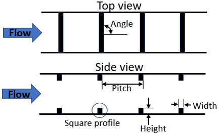 8 | Rib Angle (RIB_ANGLE) | The angle between the rib and the flow direction. 90 degrees means the rib is perpendicular to the flow. Typical angles are between 45 and 90 degrees. |