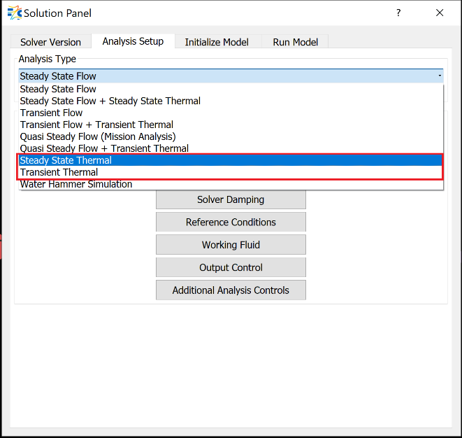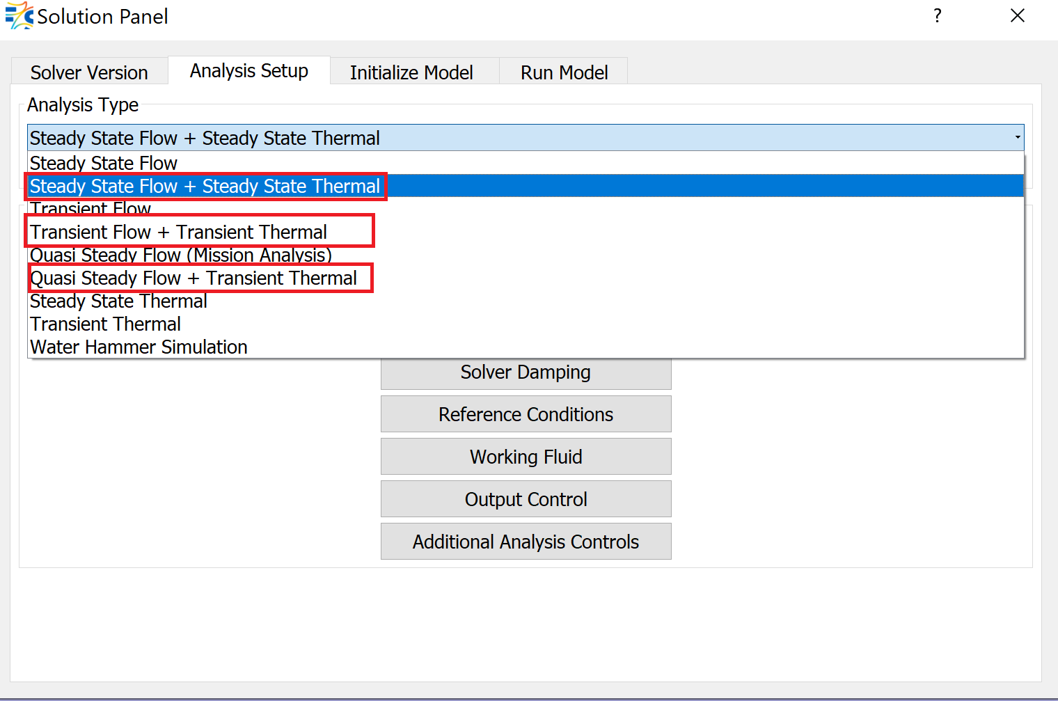 - Quasi-Steady Flow + Transient ThermalNote: If the flow model does not have transient components, such as tanks or accumulators, this option can be used.