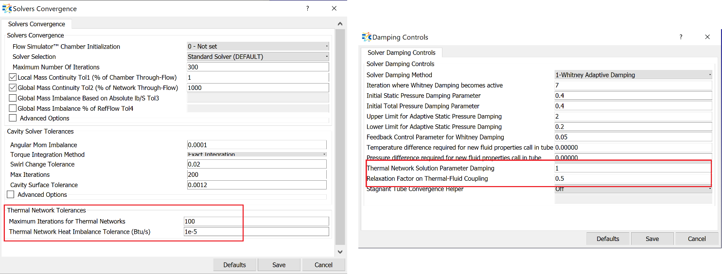 If needed, thermal network convergence tolerance and damping factors can be adjusted from the Solvers Convergence and Damping Controls panels, respectively.