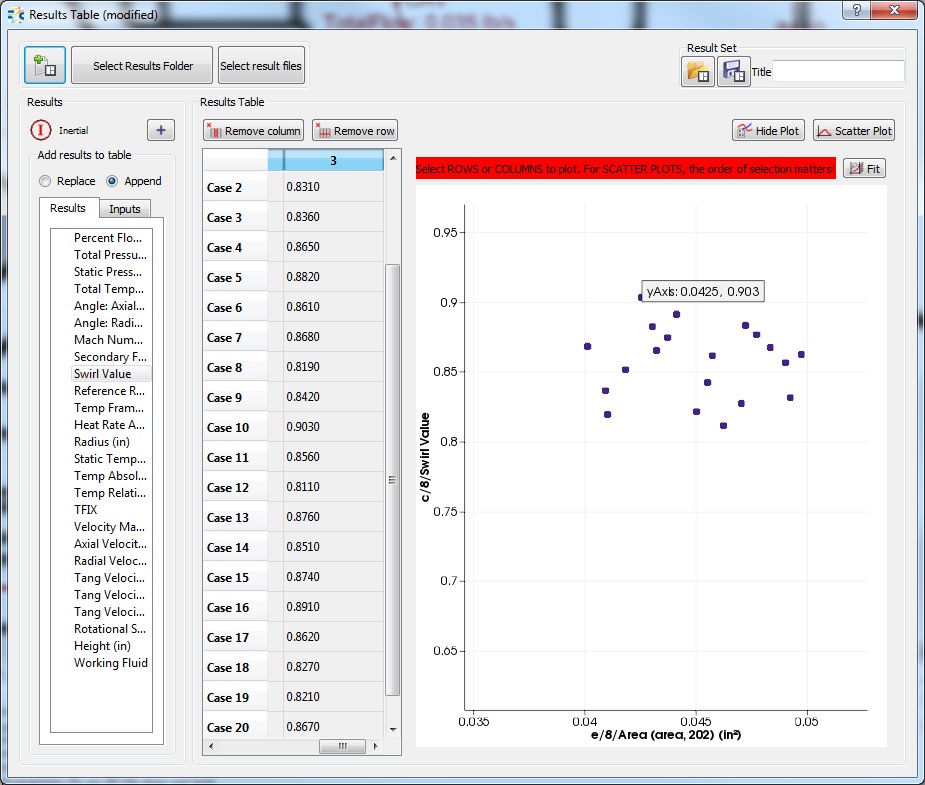 Figure 1.07:Results Table showing Tangential Angle and Swirl Value