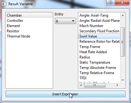 - Select Chamber, 8, Swirl and then Insert Expression